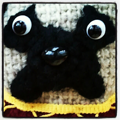 Today I want to show you a closer view of the new Tunisian Crochet pug doll I made for him.