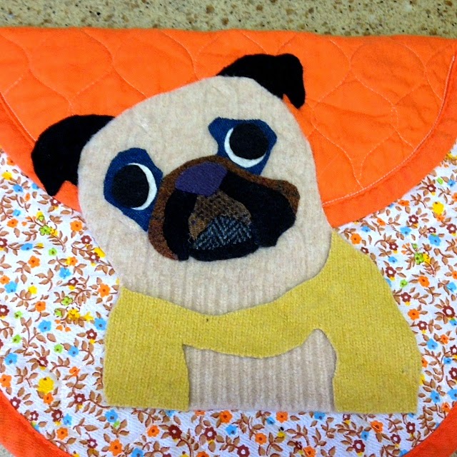 I love all your pug collages, the combination of the wool and vintage placemat is fantastic! You have such a creative mind.